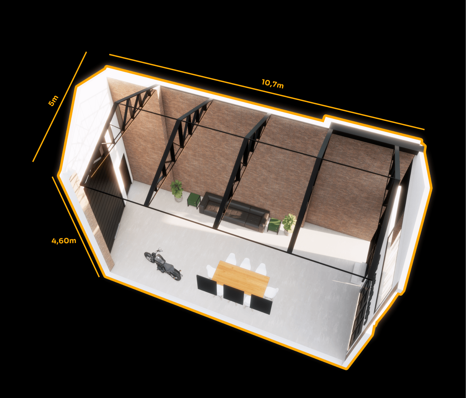 Além de funcionar como cenário para fotos e vídeos, o galpão também pode ser utilizado como espaço de apoio para equipes durante produções, acomodando profissionais em espera com conforto. O local conta com mesa de reunião para até 8 pessoas, além de cadeiras, sofás e mesas de apoio. Durante o dia, o espaço possui excelente iluminação natural, característica muito valorizada em ensaios fotográficos e gravações de vídeo, mantendo ao mesmo tempo o conforto térmico com ambiente climatizado por ar-condicionado.